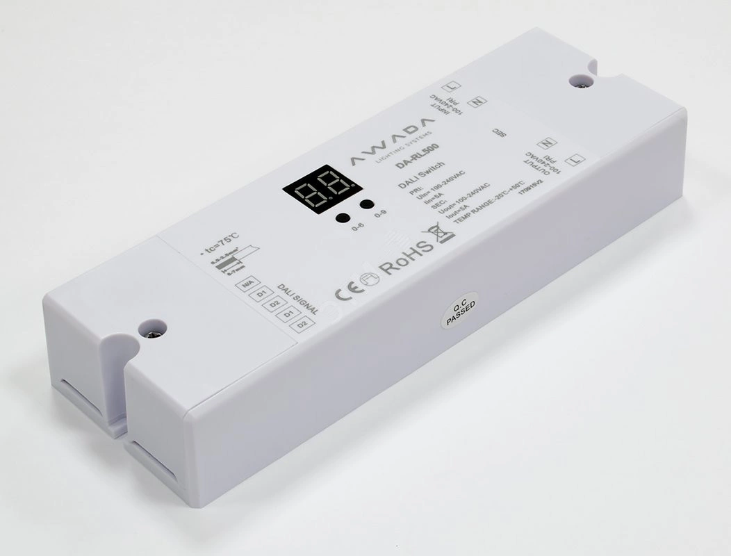 Модуль реле DA-RL500, это 1-канальное реле с управлением по протоколу DALI, предназначен для коммутации сетевой нагрузки (230В), в том числе светодиодных светильников и ламп накаливания.