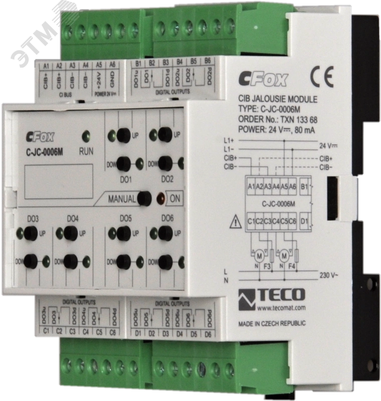 Полное описание: Модуль релейных выходов для жалюзи C-JC-0006M C-JC-0006M: CIB, 6x приводов жалюзи, (6x2 RO - зависимое переключение, локальная функция), 230VAC / 5A