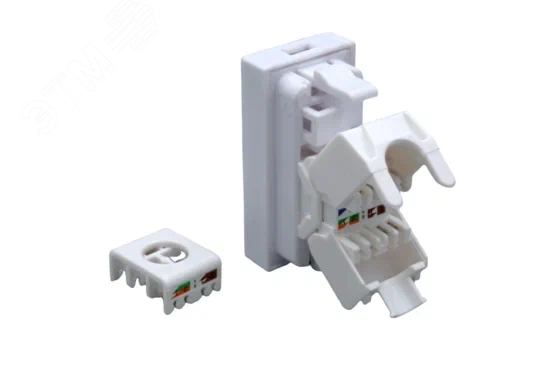 Модуль розетки – это компонент кабельной системы, позволяющий коммутировать между собой кабель ''витая пара'' и коммутационный шнур. Устанавливается в розеточную группу на рабочем месте пользователя локальной вычислительной сети для подключения рабочей станции (компьютера) посредством коммутационного шнура. Данный модуль розетки является однопортовым.