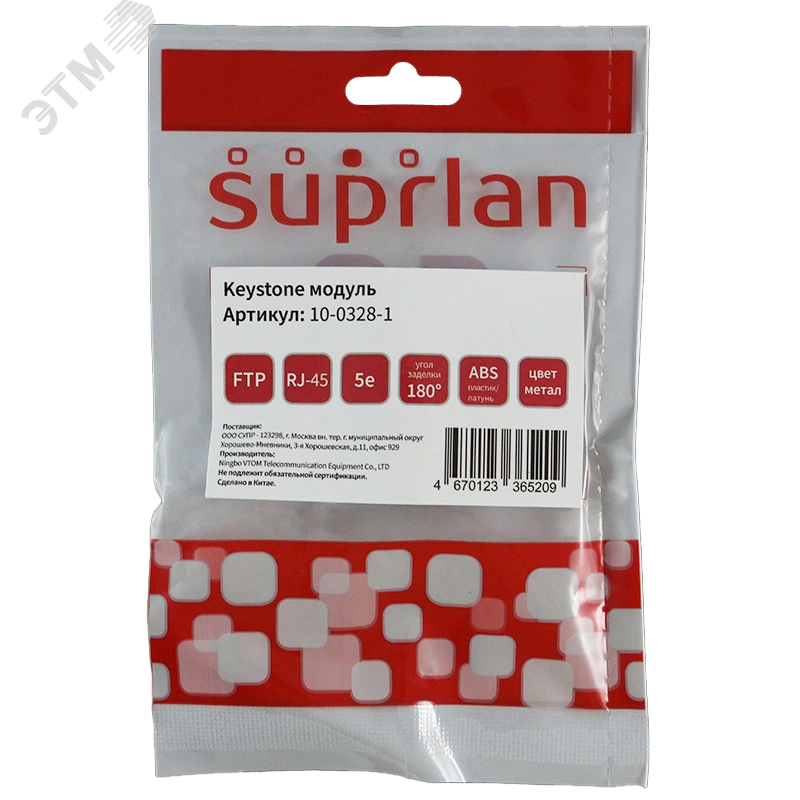 Коммутационные модули (модуль-вставки) Keystone Jack предназначены для установки в модульные патч-панели, в корпуса настенных розеток и для установки в модульные вставки типа Mosaic. С помощью коммутационных модулей организуется подключение коммуникационного оборудования и рабочих станций к информационной сети. Экранированный модуль Keystone 180 ° категории 5е производства SUPRLAN имеет классическую конструкцию, контакты IDC совместимы с одножильными проводниками сечением 22-26 AWG, разводка проводников - согласно стандарта T568 А и B. Подключаемый кабель легко монтируется без использования инструмента. Электрические характеристики соответствуют требованиям стандартов.