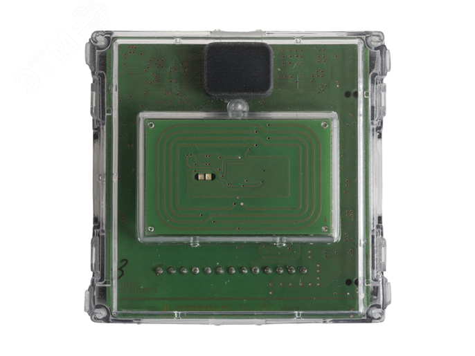 Электронный модуль в корпусе из технополимера с RFID-считывателем по технологии Mifare (13,56 МГц) и синей или белой подсветкой. Регулировка цвета и яркости светодиодов с основных модулей. Позволяет добавлять и удалять карты/брелоки непосредственно на самом считывателе или через специальную программу на ПК. В автономном режиме может управлять бесконтактными ключами в количестве до 6500. Оснащен 2 релейными контактами для открытия проходов и 2 входами для прямой активации реле. Дополняется фронтальной накладкой RFID-модуля. В сочетании с соответствующей фронтальной накладкой обеспечивает класс защиты от воды и пыли IP54.