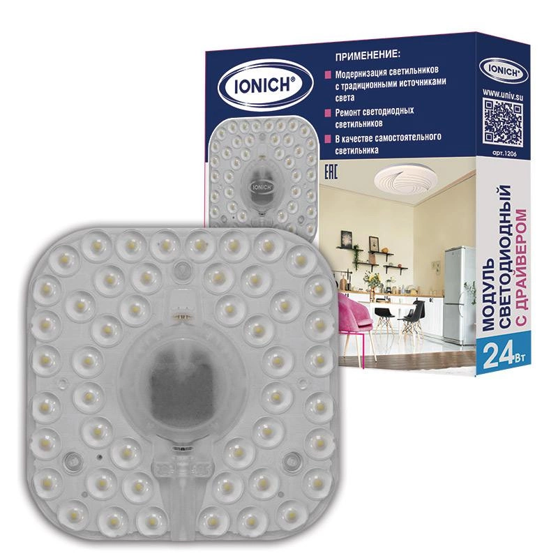 Модуль светодиодный 24Вт 6500К IP20 1920лм 230В 142х142мм для декоративных светильников IONICH 1206