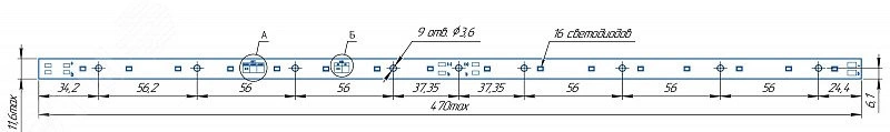 Модуль светодиодный LINE 470x11.6 AL1 2x8 Lumileds 2835 CRI80 4000K