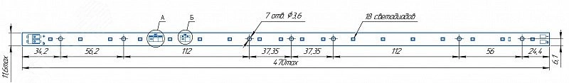 Модуль светодиодный LINE 470x11.6 AL1 2x9 Lumileds 2835 CRI80 5000K DL250