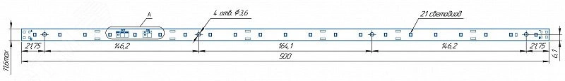 Модуль светодиодный LINE 500x11.6 AL1 3x7 Lumileds 2835 CRI80 3000K
