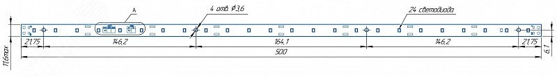 Модуль светодиодный LINE 500x11.6 AL1 3x8 Lumileds 2835 CRI80 4000K