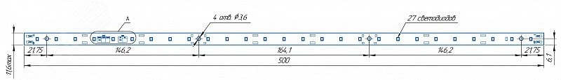 Модуль светодиодный LINE 500x11.6 AL1 3x9 Lumileds 2835 CRI80 4000K SMD2x2
