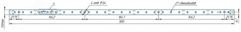 Модуль светодиодный LINE 500x11.6 AL1 3x9 Lumileds 2835 CRI80 4000K