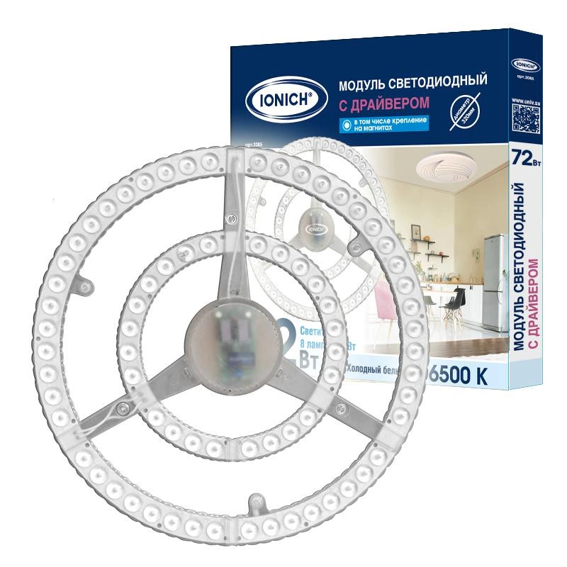 Модуль светодиодный высокой мощности для декоративных светильников 72Вт 7000лм 230В 6500К d320х25мм IP20 IONICH 2085