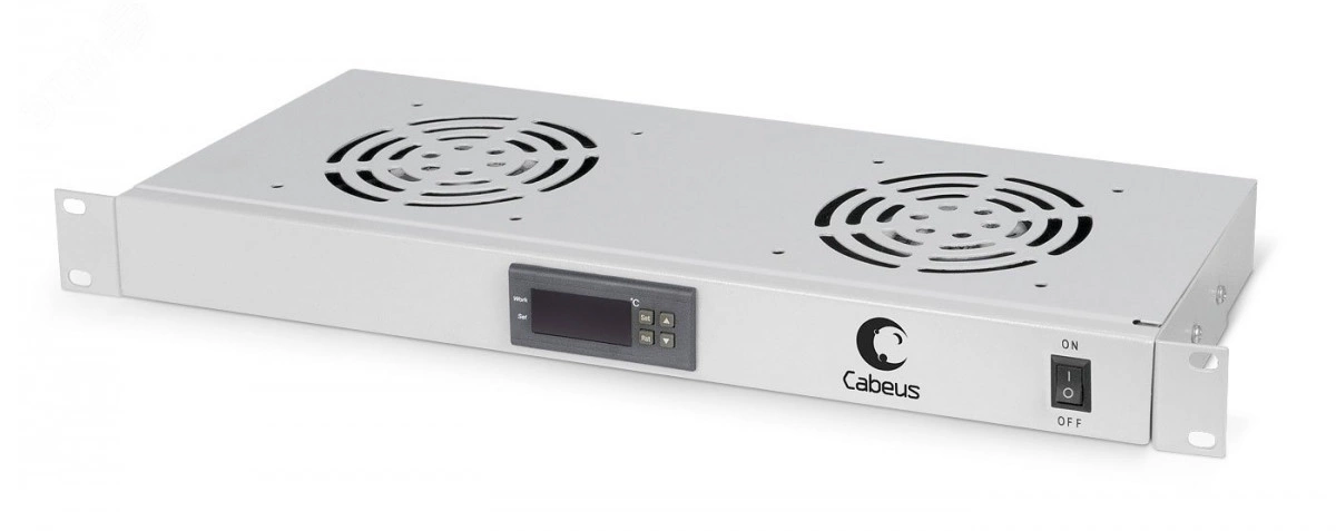 Модуль вентиляторный предназначен для охлаждения внутренней части телекоммуникационного шкафа путем отвода тепла наружу. Состоит из стального корпуса с кронштейнами для крепления на направляющих 19 дюймовых шкафов. С лицевой стороны имеется кнопка включения/выключения вентилятора и терморегулятор. С задней стороны имеется разъем IEC-60320 C14 для подключения шнура питания, разъем для подключения температурного датчика и 2 разъема IEC-60320 C13 для подключения дополнительных вентиляторов. Модель вентилятора имеет встроенный терморегулятор, для поддержания заданной температуры в шкафу в автоматическом режиме. В корпусе установлено 2 вентилятора. Питание модуля осуществляется подключением его к сети напряжением 220В с помощью шнура из комплекта поставки Schuko CEE 7/7-С13, длиной 1,5 м.