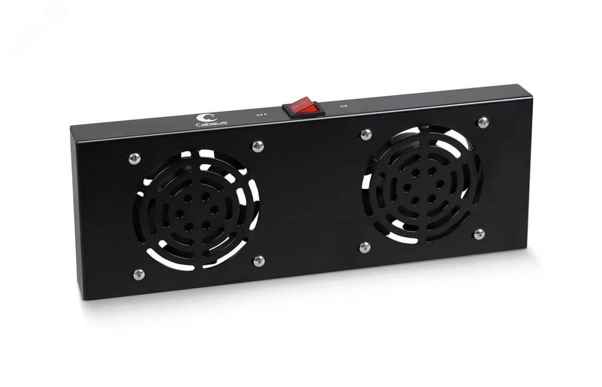 Модуль вентиляторный потолочный предназначен для охлаждения внутренней части телекоммуникационного шкафа путем отвода тепла наружу. Модель предназначена для установки в настенные телекоммуникационные шкафы Cabeus моделей SH-05F. Вентиляторный модуль состоит из металлического конструктива с закрепленными на нем 2-мя вентиляторами.Питание модуля осуществляется подключением его к сети напряжением 220В с помощью шнура питания IEC 320 C13/Schuko длиной 1,5 м. Покрытие вентиляторного модуля – порошковая краска черная (RAL9004). Установка модуля производится путем крепления с внутренней стороны шкафа к верхней его части.