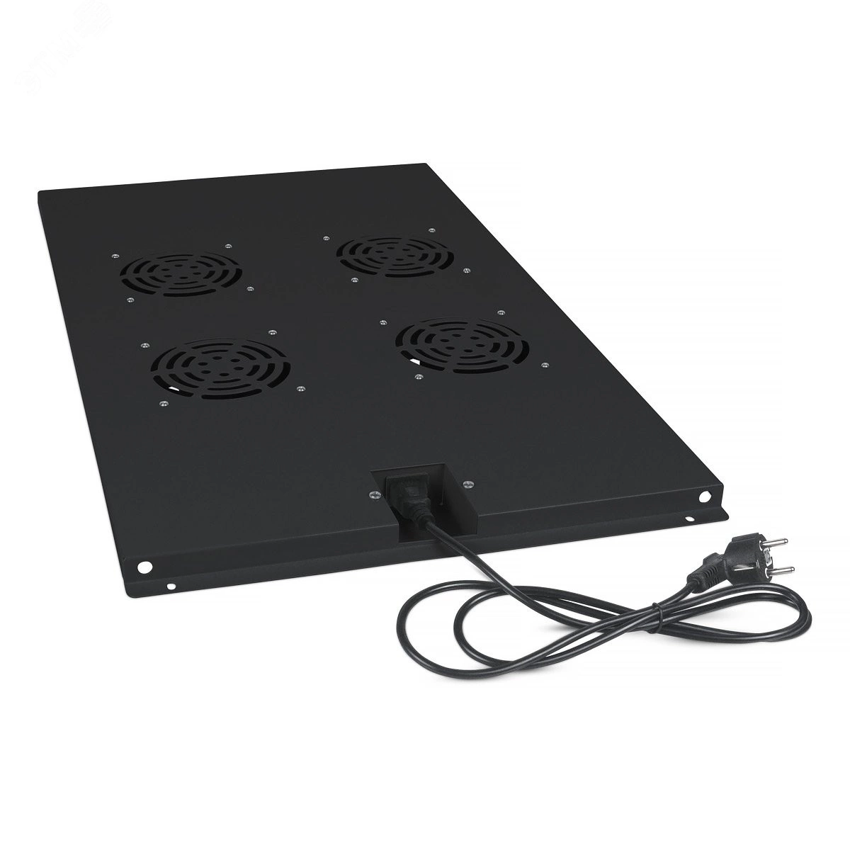 Модуль вентиляторный потолочный предназначен для охлаждения внутренней части телекоммуникационного шкафа путем отвода тепла наружу. Модель предназначена для установки в напольный телекоммуникационный шкаф Cabeus глубиной 1200 мм. Вентиляторный модуль состоит из металлического конструктива с закрепленными на нем 4-мя вентиляторами. Питание модуля осуществляется подключением его к сети напряжением 220В с помощью шнура питания IEC 320 C13/Schuko длиной 1,5 м. Покрытие вентиляторного модуля – порошковая краска черная. Установка модуля производится путем крепления с внутренней стороны шкафа к верхней его части.