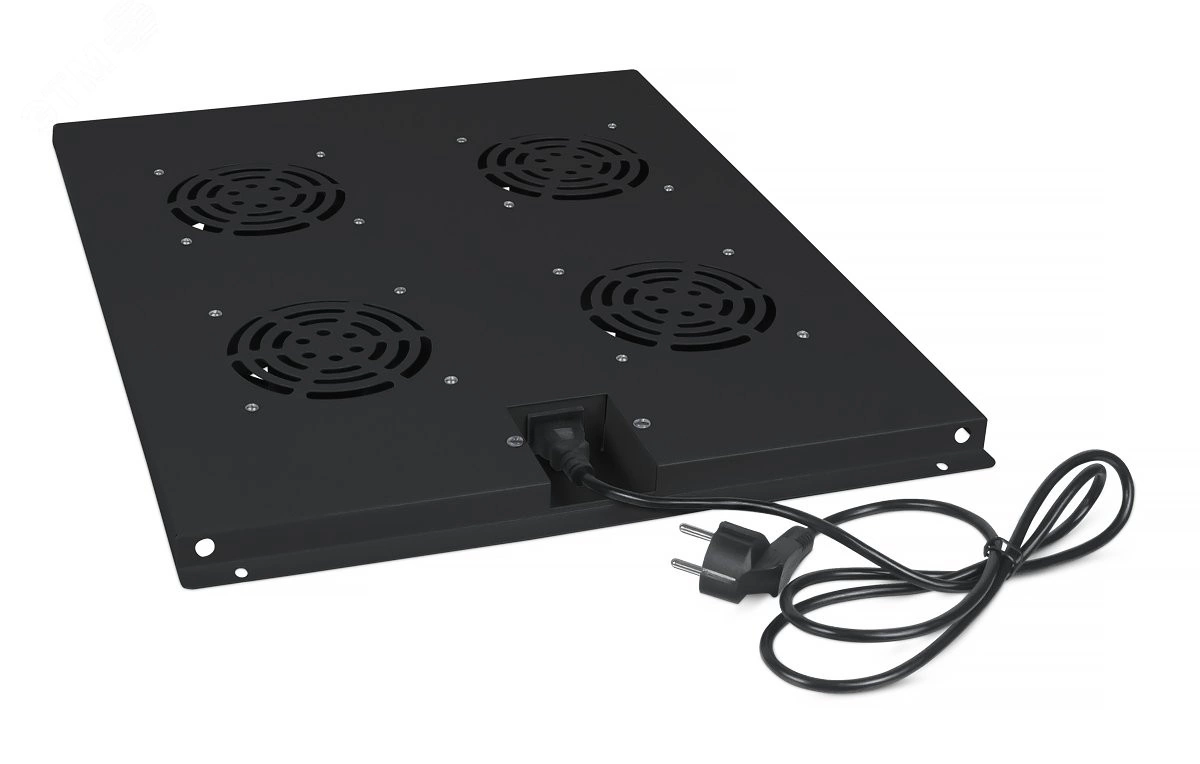 Модуль вентиляторный потолочный предназначен для охлаждения внутренней части телекоммуникационного шкафа путем отвода тепла наружу. Модель предназначена для установки в напольный телекоммуникационный шкаф Cabeus глубиной 800 мм. Вентиляторный модуль состоит из металлического конструктива с закрепленными на нем 4-мя вентиляторами. Питание модуля осуществляется подключением его к сети напряжением 220В с помощью шнура питания IEC 320 C13/Schuko длиной 1,5 м. Покрытие вентиляторного модуля – порошковая краска черная. Установка модуля производится путем крепления с внутренней стороны шкафа к верхней его части.