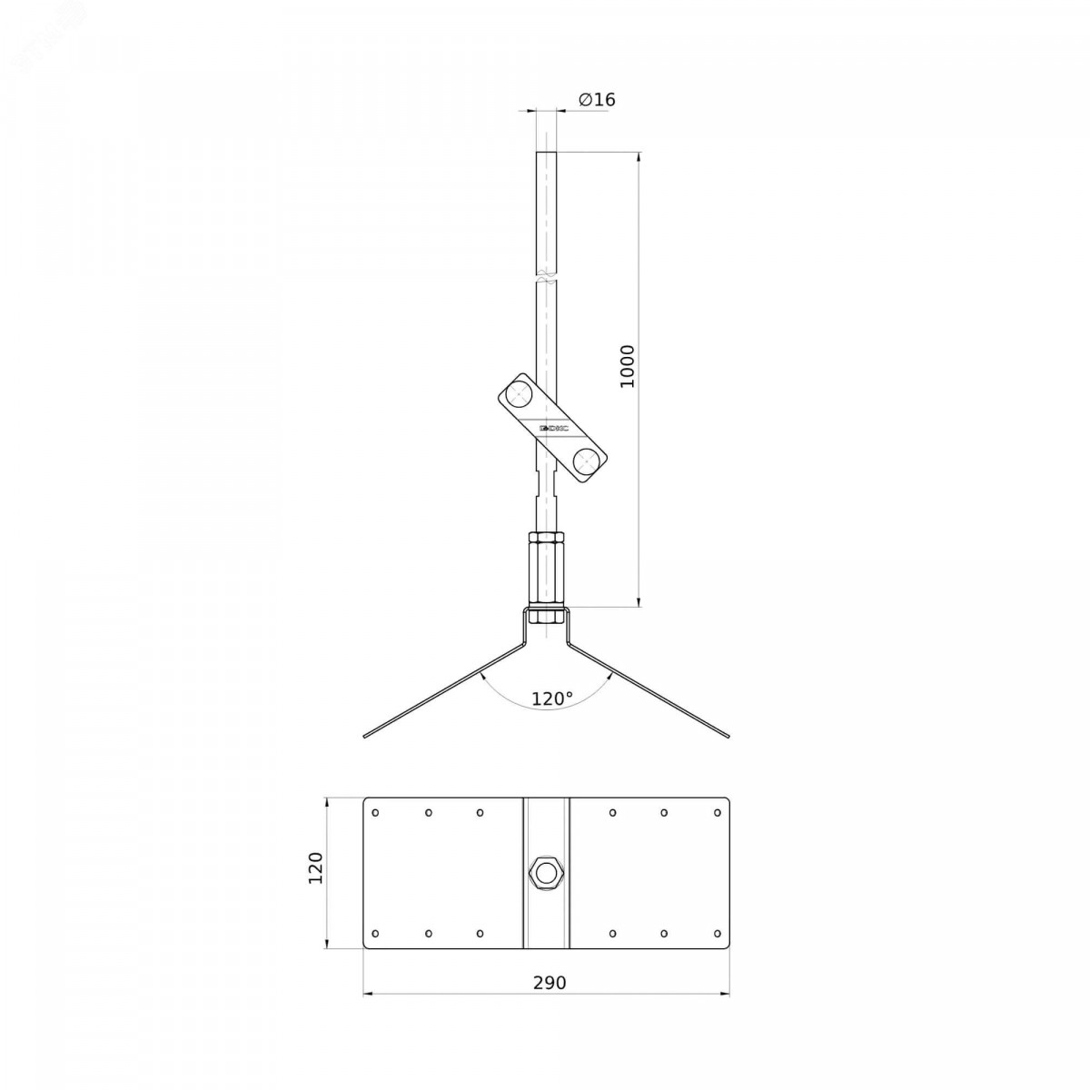 Молниеприемник коньковый с угловым зажимом, 1000 мм