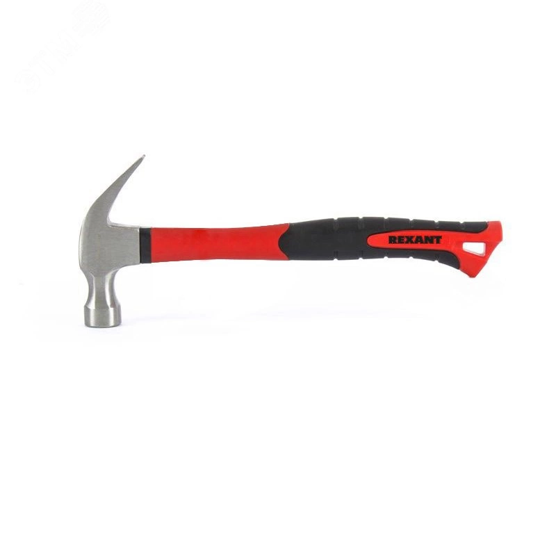 Молоток с гвоздодером REXANT (плотницкий молоток) с фибергласовой рукояткой служит для проведения плотницких работ, забивания гвоздей или их извлечения. Рабочая часть инструмента отфрезерована, отшлифована, имеет черное лакокрасочное покрытие и надежно зафиксирована на рукоятке с помощью специального эпоксидного клея. Твердость бойка – части головки, принимающей на себя максимальные нагрузки, составляет 50–55 HRC. Фибергласовая обрезиненная рукоятка эффективно снижает колебания, возникающие при ударе. Головка молотка с селективной закалкой.