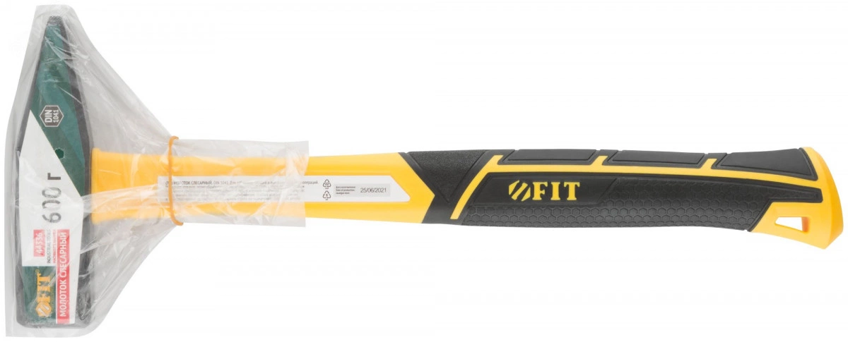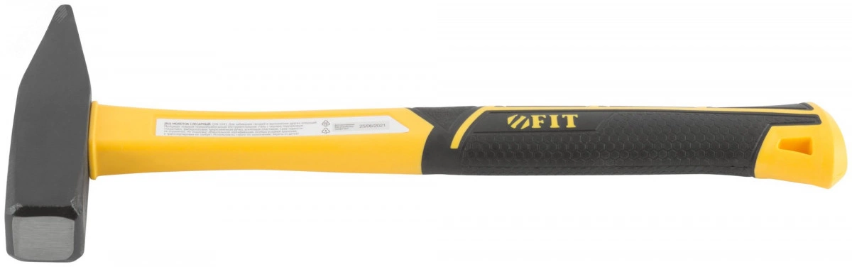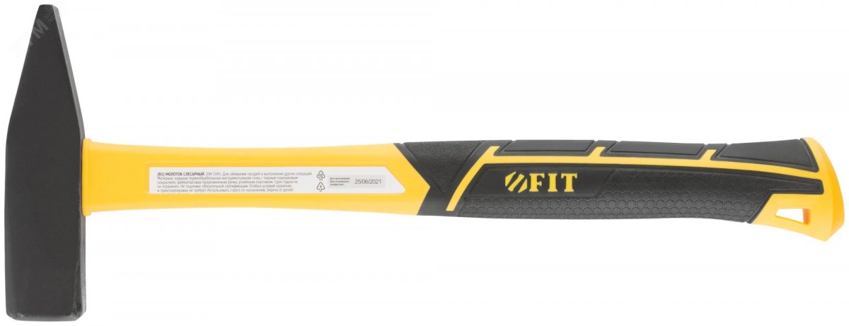 Молоток слесарный FIT IT применяется в слесарных, столярных, монтажных и прочих работах. Головка изготовлена из кованой закаленной инструментальной стали марки 45 с твердостью 50-58 HRC и выдерживает высокие ударные нагрузки. Глубина закалки бойка 4-5 мм обеспечивает высокую износостойкость. Черное порошковое покрытие головы предотвращает коррозию. Отверстие под темляк позволяет использовать молоток при высотных работах и хранить на подвесе. Широкая эргономичная рукоятка имеет противоскользящую резиновую вставку. Фибергласовый сердечник упрочняет конструкцию рукоятки. Прочное соединение головы с рукояткой обеспечивается полимерным клеем.