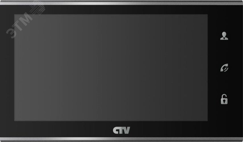 Цветной монитор видеодомофона с диагональю экрана 7 дюймов, с поддержкой разрешения Full HD, с сенсорным управлением и детектором движения. Есть функция автоматического определения формата видеосигнала.