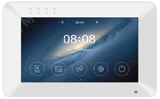 Монитор цветного видеодомофона 7'' разрешение 1024x600 hands free с поддержкой форматов CVBS и 720p/1080p (AHD/CVI/TVI) и функцией Wi-Fi (может работать в беспроводных или проводных сетях Ethernet). Адаптирован для работы с цифровыми многоквартирными домофонами. Возможность связи вызывных панелей с приложением ''vhOme 2.2'' для iOS и Android. Встроенная память на 50 фото или 6 видео. Запись фото или видеона microSD карту до 128 ГБ (в комплект не входит). Запись по детектору движения, по одному каналу. Питание 220В.