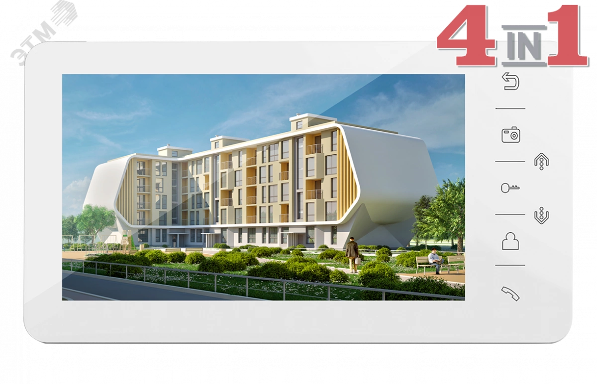 Cовременный монитор домофона премиум-класса. Экран с диагональю 7'' обеспечивает высокое качество картинки. Управление осуществляется при помощи экранного меню на русском языке сенсорными кнопками. Связь осуществляется без трубки. Монитор поддерживает форматы - AHD/CVI/TVI с разрешением 1080p/720p или CVBS (PAL/NTSC. Помимо классических возможностей домофона TANTOS Prime HD позволяет использовать его как будильник календарь – в качестве мелодии вызова и сигнала будильника можно использовать любимую мелодию в формате MP3. Также монитор поддерживает функцию записи по детектору движения.