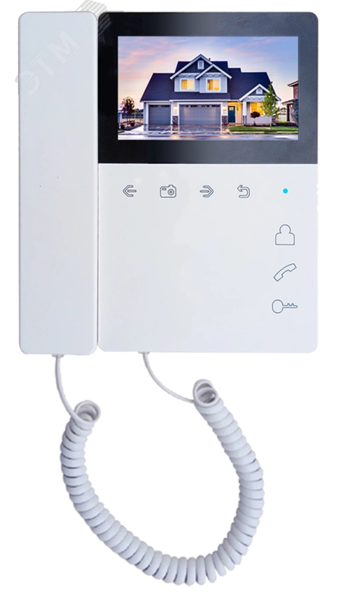 Монитор цветного видеодомофона с трубкой на магните экран 4.3 дюйма адаптирован для работы с координатными подъездными домофонами, сенсорные кнопки управления, встроенный блок питания, возможность записи фото и видео на SD карту. TFT LCD 4.3'' 480x272 PAL/NTSC. Подключение - 1 подъездная вызывная панель с видеокамерой, 2 индивидуальные вызывные панели, 2 камеры. Запись фото и видео на microSD до 32ГБ или фото во внутреннюю память не менее 64 кадров. Питание 220В.