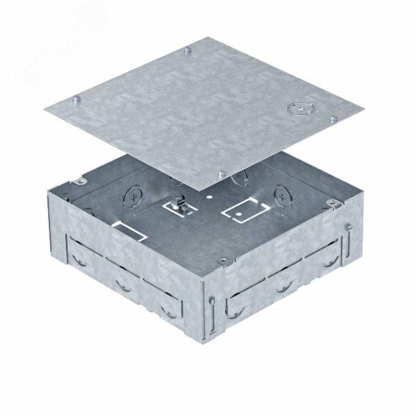 Квадратный встраиваемый корпус для резервуара изделия GES4-2 для применения в бесшовных полах во внутренних помещениях. С отверстиями для ввода кабеля (M25) со всех четырех сторон. При поставке встроенный корпус закрыт защитной монтажной крышкой. Минимальная монтажная глубина составляет 70мм, диапазон выравнивания + 30мм.