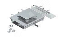 Монтажная секция кабельного канала с крышкой для установки лючка номинального размера 9. Секция состоит из основания кабельного канала (закрытого корпуса с боковыми профилями и профилями для стыковки с напольным покрытием), крышки канала с наглухо закрытым монтажным отверстием и торцевой заглушки. В комплекте с 3 регулируемыми крепежными уголками, 3 анкерами для стяжки, 1 опорой крышки и 1 комплектом для угловой секции.
