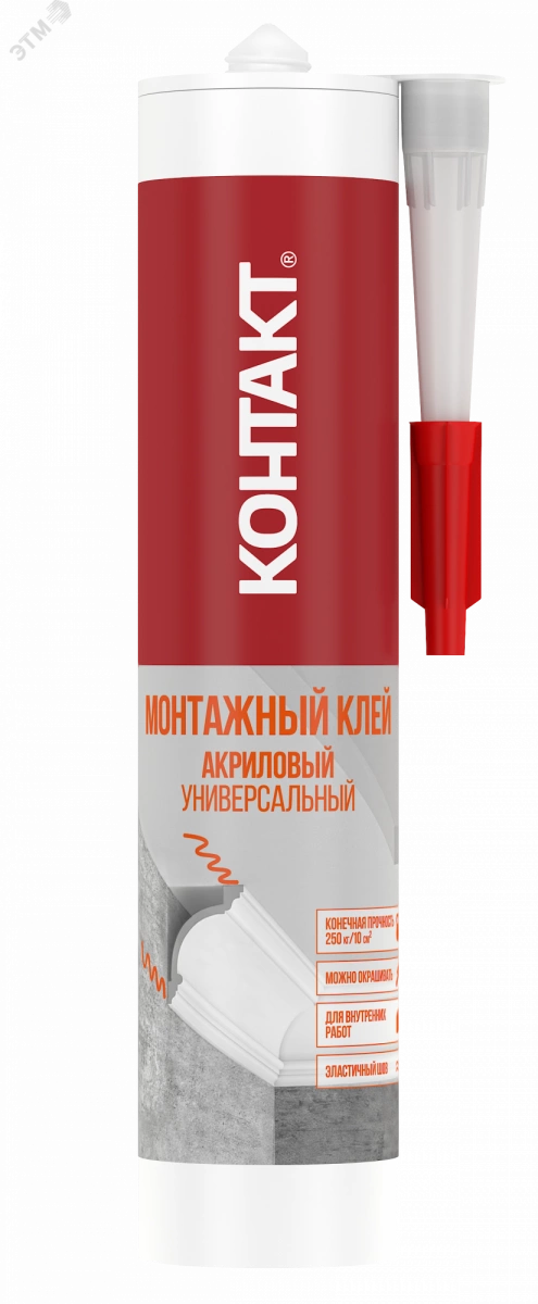 Универсальный клей на основе акриловой водной дисперсии для соединения строительных материалов между собой и приклеивания к впитывающим поверхностям при проведении монтажных и отделочных работ внутри помещения. Идеален для использования с материалами - полиуретан, полистирол, МДФ, гипс, ГЛК, ПВХ, дерево, керамика. Не использовать для работы с полиэтиленом, полипропиленом, тефлоном и битумом. Можно окрашивать после высыхания. Без запаха. Негорючий. Не выделяет вредных летучих органических соединений.
