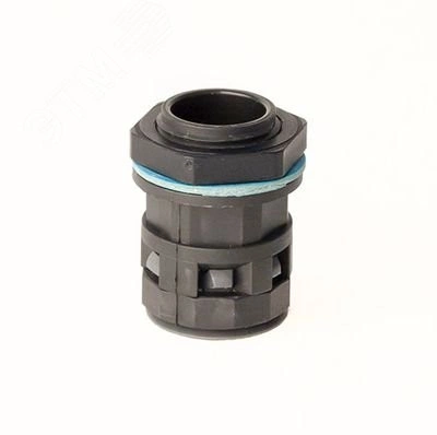 Монтажный комплект муфта труба-коробка, IP65/IP67. Номинальный диаметр 10 мм. Материал – полиамид (PA6.6). Цвет: черный. Температура эксплуатации от -40 до +105 градусов по Цельсию (кратковременное воздействие до +150 градусов по Цельсию). Степень защиты IP65 без уплотнителей PAPM и IP67 с уплотнителями PAR и PAPM. Простая и надежная стыковка с трубой. Не содержит галогенов. Комплектация: муфта труба-коробка, прокладка уплотнительная, гайка с метрической резьбой. Используется для ввода гофрированных полиамидных труб в корпуса оборудования, шкафы, щитки, распаечные коробки.
