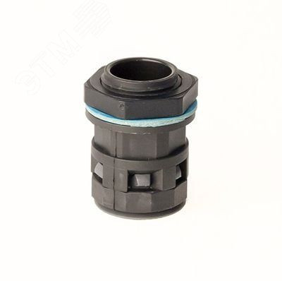 Монтажный комплект муфта труба-коробка, IP65/IP67. Номинальный диаметр 29 мм. Материал – полиамид (PA6.6). Цвет: черный. Температура эксплуатации от -40 до +105 градусов по Цельсию (кратковременное воздействие до +150 градусов по Цельсию). Степень защиты IP65 без уплотнителей PAPM и IP67 с уплотнителями PAR и PAPM. Простая и надежная стыковка с трубой. Не содержит галогенов. Комплектация: муфта труба-коробка, прокладка уплотнительная, гайка с метрической резьбой. Используется для ввода гофрированных полиамидных труб в корпуса оборудования, шкафы, щитки, распаечные коробки.