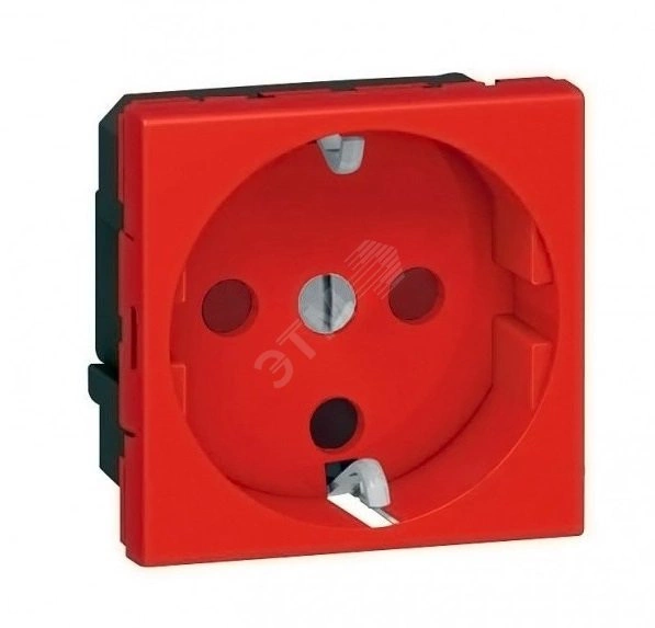 Полное описание: Mosaic Розетка с заземлением с блокировкой красная на 2 модуля
