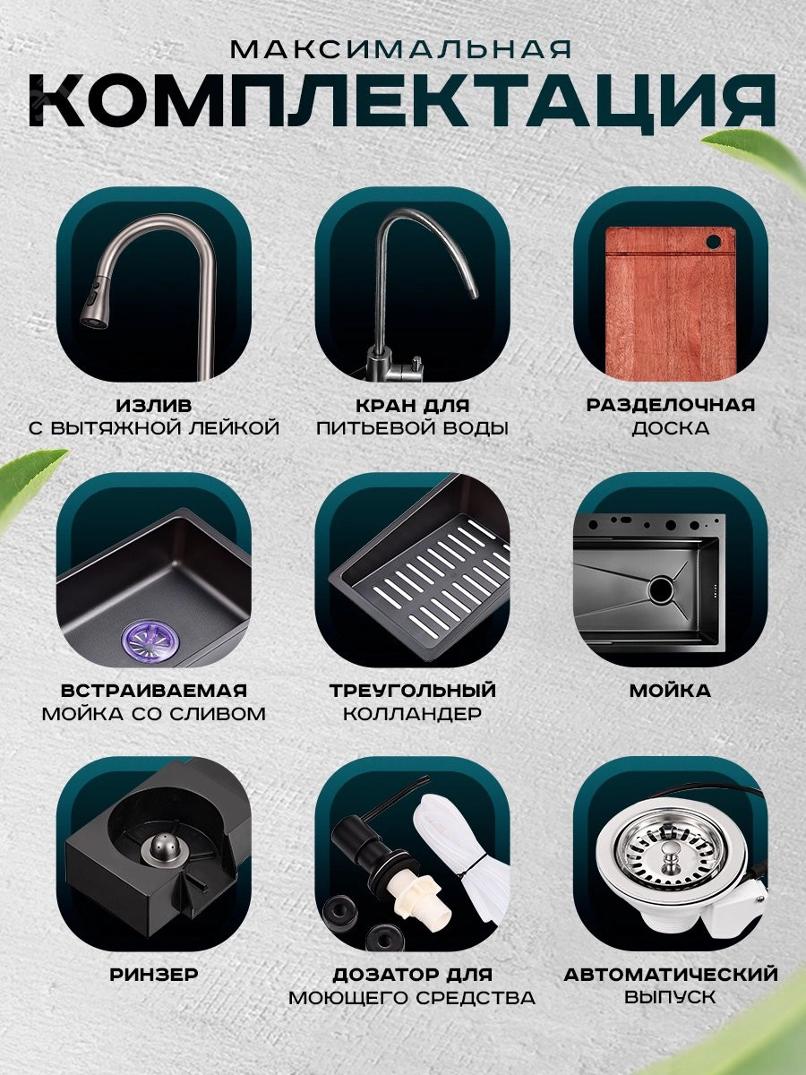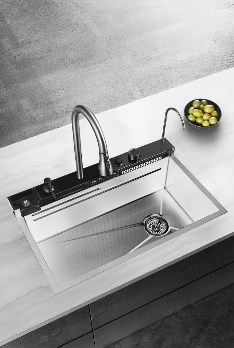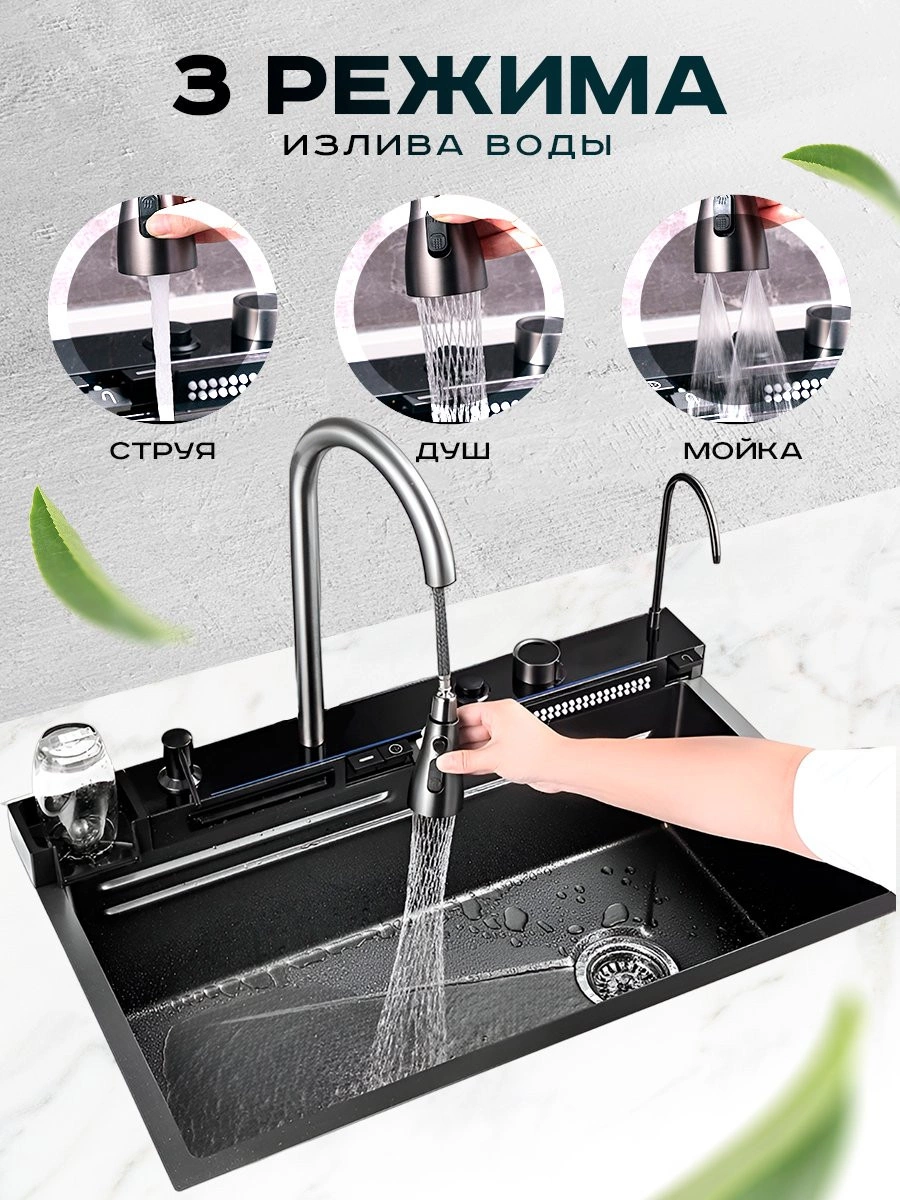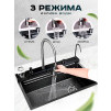 Многофункциональная кухонная мойка Профсан ПСМ-9941ST, универсальное, готовое решение с новым подходом мытья посуды, овощей, фруктов и наполнения различных ёмкостей. В вашем распоряжении фронтальный душ и водопад с ламинарным потоком, лейка, смесителя, трёхрежимная с функциями душа, аэрированного потока или двойной струи высокого давления для быстрого споласкивания посуды от остатков еды и последующей загрузки в посудомоечную машину. Удобный ринзер для споласкивания стаканов, банок и других ёмкостей. Кран для подключения питьевой воды и дозатор для моющего средства с длинным шлангом. Коландер (чаша с бортиками и перфорированным дном) аналог дуршлага. Чаша со сливным отверстием для трансформации единого пространства мойки на два отделения. Для удобства резки мытых овощей, фруктов, зелени и любых других продуктов в комплект входит разделочная доска с установкой на уровне бортов мойки.
