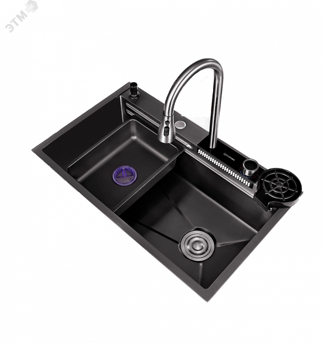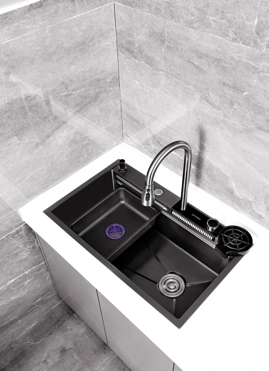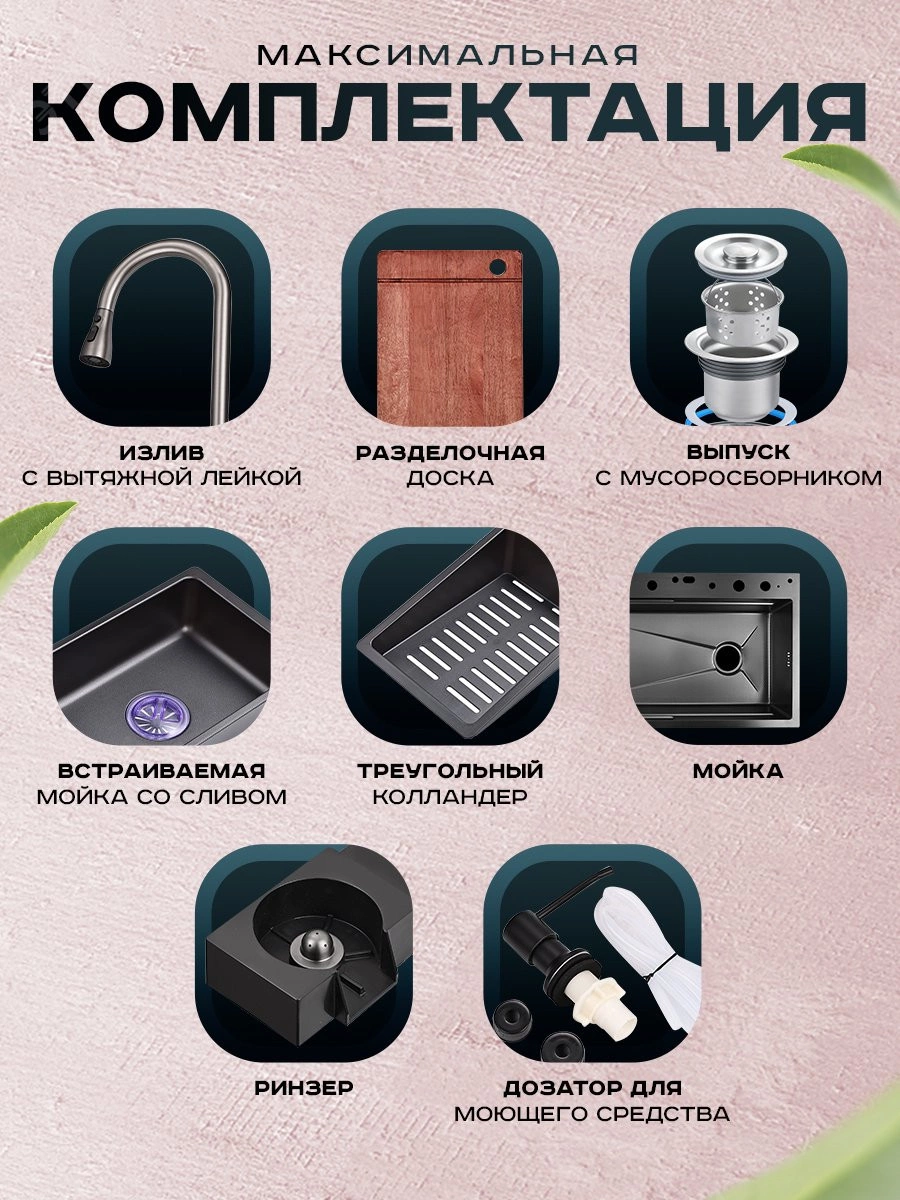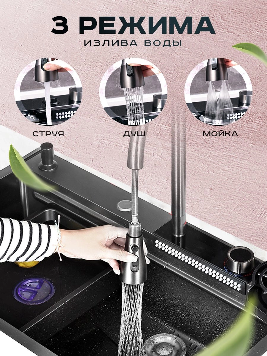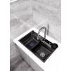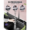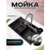 Многофункциональная кухонная мойка Профсан ПСМ-9954GR, универсальное, готовое решение с новым подходом мытья посуды, овощей, фруктов и наполнения различных ёмкостей. В вашем распоряжении фронтальный душ, лейка, смесителя, трёхрежимная с функциями душа, аэрированного потока или двойной струи высокого давления для быстрого споласкивания посуды от остатков еды и последующей загрузки в посудомоечную машину. Удобный ринзер для споласкивания стаканов, банок и других ёмкостей и дозатор для моющего средства с длинным шлангом. Коландер (чаша с бортиками и перфорированным дном) аналог дуршлага. Чаша со сливным отверстием для трансформации единого пространства мойки на два отделения. Для удобства резки мытых овощей, фруктов, зелени и любых других продуктов в комплект входит разделочная доска с установкой на уровне бортов мойки.