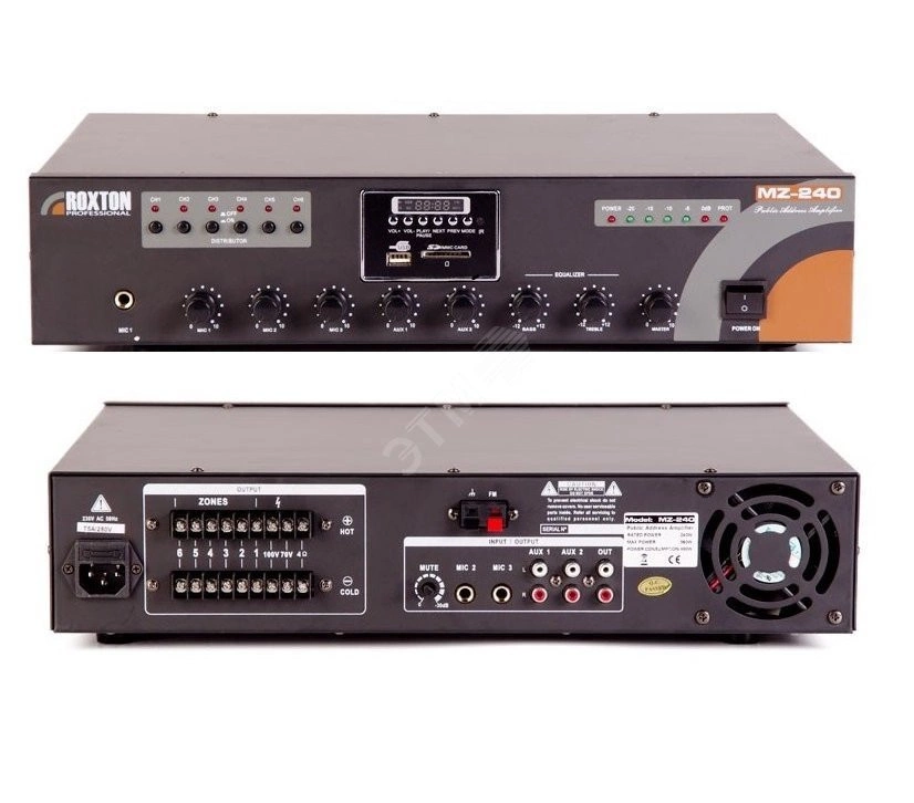 МР3-плеер-USB-FM-тюнер-усилитель 240Вт, 3 микр/2 лин входа, ИК-пульт ДУ, 6 зон
