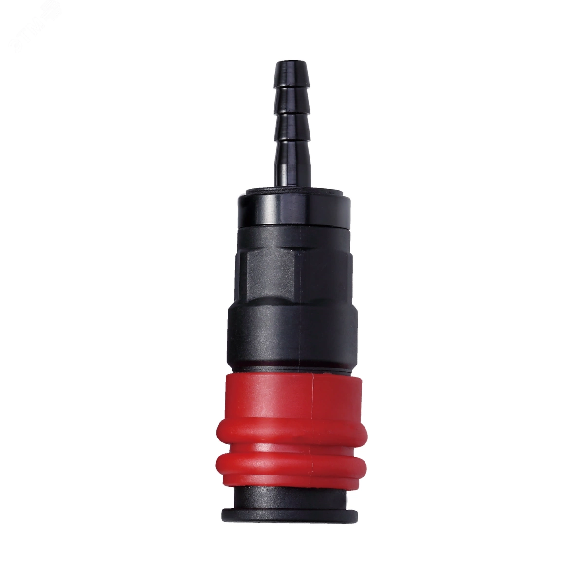 Предназачена для пневматических линий. Стандарт БРС - EURO. Подключение к магистрали - ёлочка, 8 мм. Длина - 98 мм. Диаметр - 29 мм. Механизм фиксации - роликовый. Материал корпуса - нейлон. Материал роликов - сталь