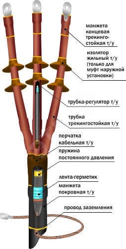 Полное описание: Муфта кабельная концевая 10ПКНТпб-3х(35-50)/800ммбез наконечников