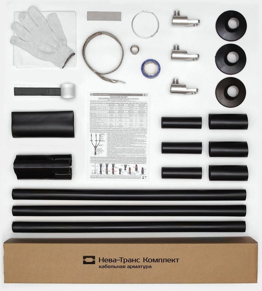 Муфта концевая термоусаживаемая марки 1КНТпН-3х(35-50) с наконечниками болтовыми наружной установки предназначена для оконцевания 3-х жильных силовых кабелей сечением 35, 50 кв мм с бумажной или с пластмассовой изоляцией, с броней или без брони, на напряжение до 1 кВ включительно. Универсальна в применении. Устанавливается на открытом воздухе при температуре окружающей среды от -50 градусов Цельсия до +50 градусов Цельсия и относительной влажности до 98%, в том числе в качестве мачтовой. Соответствует требованиям ГОСТ 13781.0-86 и ТУ Нева-Транс 3599-012-31930690-2016. Прошла необходимый комплекс независимых испытаний, на основании которых выдан сертификат соответствия Госстандарта России. Сочетает в себе высокую эксплуатационную надежность и экологическую безопасность. Устойчива к ультрафиолетовому излучению и воздействию атмосферных осадков.
