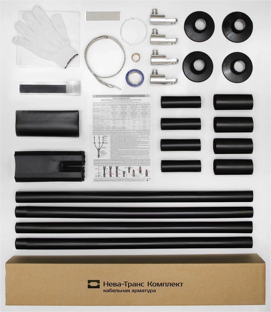 Муфта концевая термоусаживаемая марки 1КНТпН-4х(150-240) с наконечниками болтовыми наружной установки предназначена для оконцевания 4-х жильных силовых кабелей сечением 150, 185, 240 кв мм с бумажной или с пластмассовой изоляцией, с броней или без брони, на напряжение до 1 кВ включительно. Универсальна в применении. Устанавливается на открытом воздухе при температуре окружающей среды от -50 градусов Цельсия до +50 градусов Цельсия и относительной влажности до 98%, в том числе в качестве мачтовой. Соответствует требованиям ГОСТ 13781.0-86 и ТУ Нева-Транс 3599-012-31930690-2016. Прошла необходимый комплекс независимых испытаний, на основании которых выдан сертификат соответствия Госстандарта России. Сочетает в себе высокую эксплуатационную надежность и экологическую безопасность. Устойчива к ультрафиолетовому излучению и воздействию атмосферных осадков.