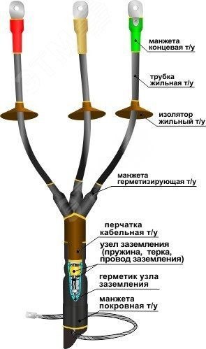 Для оконцевания 3-х жильных силовых кабелей с бумажной или с пластмассовой изоляцией, с броней или без брони (наружной установки)