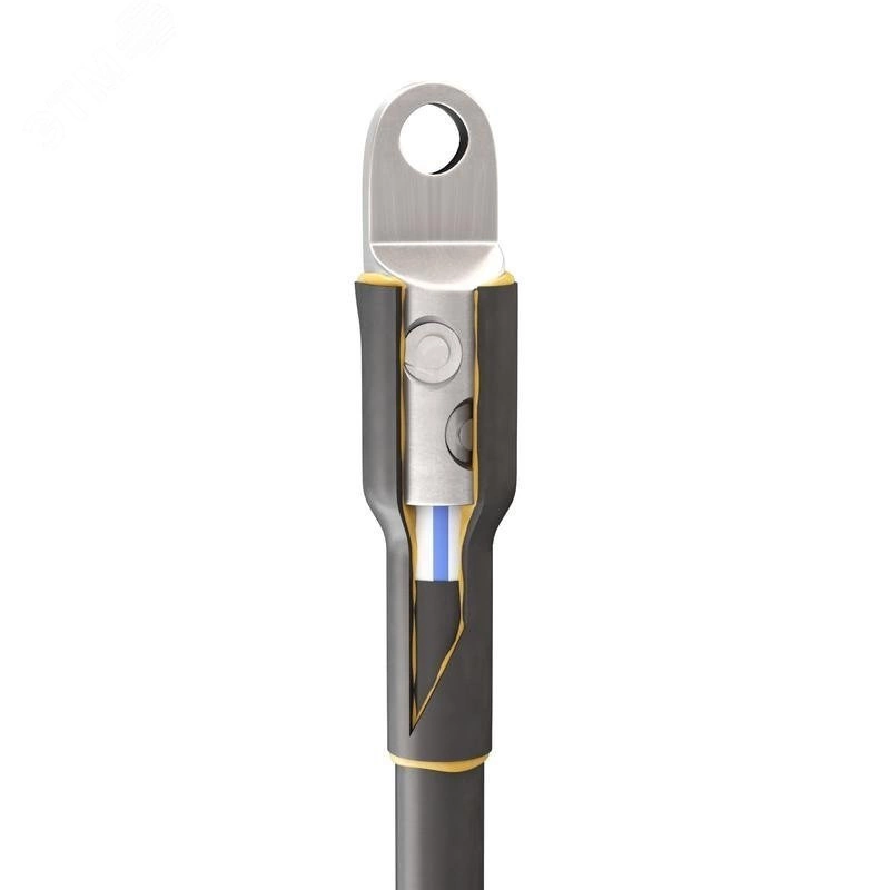 Предназначены для герметичного оконцевания кабелей и проводов - с пластмассовой изоляцией (ПВХ/СПЭ, на напряжение до 1 кВ. Комплект состоит из болтового наконечника с рядным расположением болтов и термоусаживаемой манжеты с клеевым слоем. Каждый комплект является мультиразмерным и рассчитан на расширенный диапазон сечений кабеля. Крепление на жиле осуществляется методом завинчивания болтов со срывной головкой. Болтовые головки срываются при достижении установленного момента, обеспечивающего оптимальные механические и электрические свойства контактного соединения. Термоусаживаемые трубки с клеевым слоем и с коэффициентом усадки до 4 -1 обеспечивают полную герметизацию и изоляцию соединений. Эксцентриковое отверстие под кабельную жилу в корпусе наконечника. Термоусаживаемая манжета устойчива к ультрафиолетовому излучению и погодным погодно-климатическим условиям. При усадке клеевой слой расплавляется, заполняет все неровности микрорельефа и обеспечивает полную герметичность соединений.