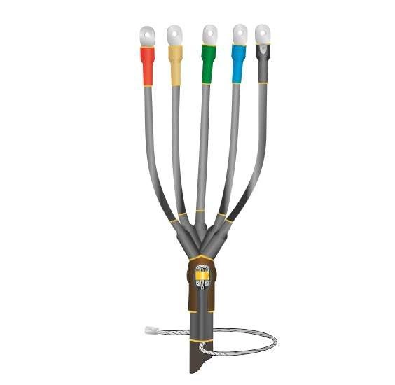 МУФТА КОНЦЕВАЯ ТЕРМОУСАЖИВАЕМАЯ МАРКИ 1ПКВ(Н)ТпбН-5х(70-120) С НАКОНЕЧНИКАМИ БОЛТОВЫМИ ВНУТРЕННЕЙ И НАРУЖНОЙ УСТАНОВКИ предназначена для оконцевания 5-ти жильных силовых кабелей сечением 70, 95, 120 кв.мм с пластмассовой изоляцией с броней на напряжение до 1 кВ включительно.