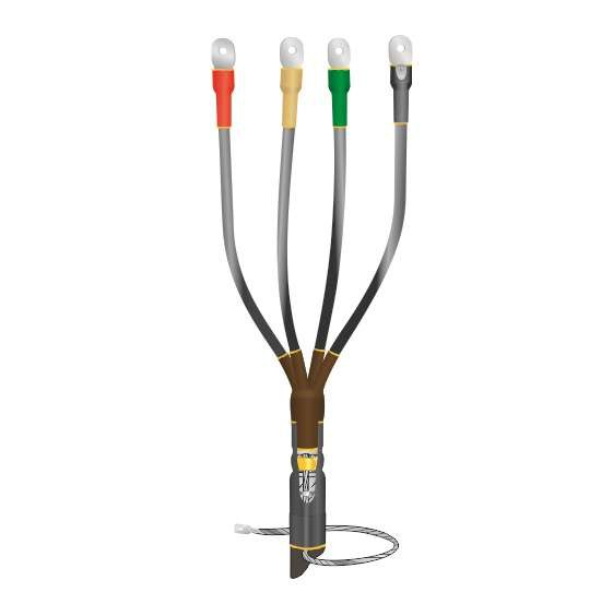 МУФТА КОНЦЕВАЯ ТЕРМОУСАЖИВАЕМАЯ МАРКИ 1КВТпН-4х(150-240) С НАКОНЕЧНИКАМИ БОЛТОВЫМИ ВНУТРЕННЕЙ УСТАНОВКИ предназначена для оконцевания 4-х жильных силовых кабелей сечением 150, 185, 240 кв.мм с бумажной или с пластмассовой изоляцией, с броней или без брони, на напряжение до 1 кВ включительно. Универсальна в применении.