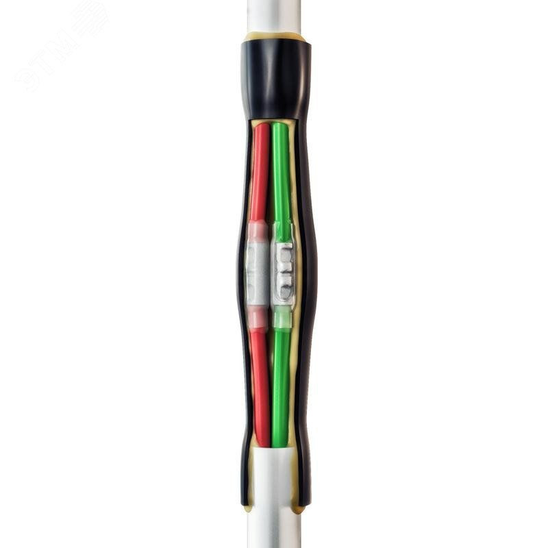 Для соединения медных проводов и кабелей - с пластмассовой изоляцией малых сечений (ПВХ/СПЭ) на напряжение до 400 В. Для кабелей с броней используется непаянная система заземления. Комплект может быть использован на 2-3-х жильном, либо 4–5-ти жильном кабеле в диапазоне сечений от 1.0 до 10 мм. Состав муфты - соединительные медные луженые гильзы ГМЛ(о), соединительные термоусаживаемые манжеты с клеевым подслоем, защитный кожух со сплошным нанесением клея на внутренней поверхности, 2 пружины ППД (для муфт с броней), провод заземления (для муфт с броней). Муфта имеет два контура герметичности, представленных клеевыми термоусаживаемыми трубками для изоляции контактных соединений (цвет - прозрачный) и общей трубкой восстановления оболочки кабеля (цвет - черный). Термоусадочные трубки с внутренним слоем термоплавкого клея обеспечивают качественную изоляцию и герметичность соединений. Трубки восстановления оболочки кабеля устойчивы к ультрафиолетовому излучению и погодным условиям.