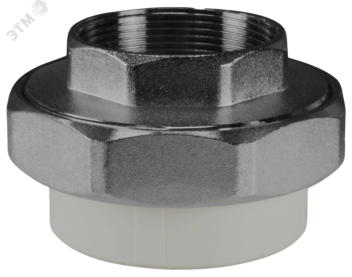 Комбинированный полипропиленовый фитинг, закладная деталь изготовлена из латуни марки ЛС-59-2. Представляет собой разъемное соединение между металлической и пластиковой трубой. Латунные части производятся методом горячего штампования, пластиковые - методом литья под давлением.
