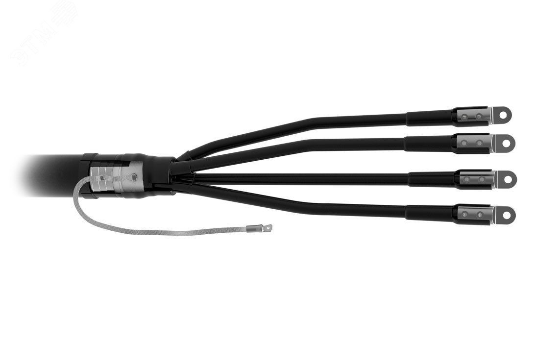 Предназначена для оконцевания 4-х жильных силовых кабелей с бумажной маслопропитанной изоляцией на напряжение до 1 кВ, для внутренней и наружной установки. Концевая термоусаживаемая муфта состоит из термоусаживаемой перчатки, термоусаживаемых трубок изоляции жил, манжет, провода заземления с наконечником. В комплект муфты входят алюминиевые наконечники с контактными винтами со срывающимися головками. Для улучшения электропроводящих свойств на контактные поверхности болтов нанесена специальная смазка. Болтовые наконечники предусмотрены для монтажа как на алюминиевую, так и на медную жилы.