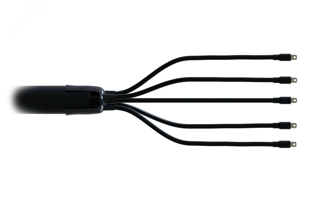 Предназначена для оконцевания 4-х жильных силовых кабелей с пластмассовой изоляцией без брони на напряжение до 1 кВ для внутренней и наружной установки. Концевая термоусаживаемая муфта состоит из термоусаживаемой перчатки, на внутреннюю поверхность которой нанесен термоплавкий клей, термоусаживаемых трубок изоляции жил, манжет. В комплект муфты входят алюминиевые наконечники с контактными винтами со срывающимися головками. Для улучшения электропроводящих свойств на контактные поверхности болтов нанесена токопроводящая мастика. Болтовые наконечники предусмотрены для монтажа как на алюминиевую, так и на медную жилы.