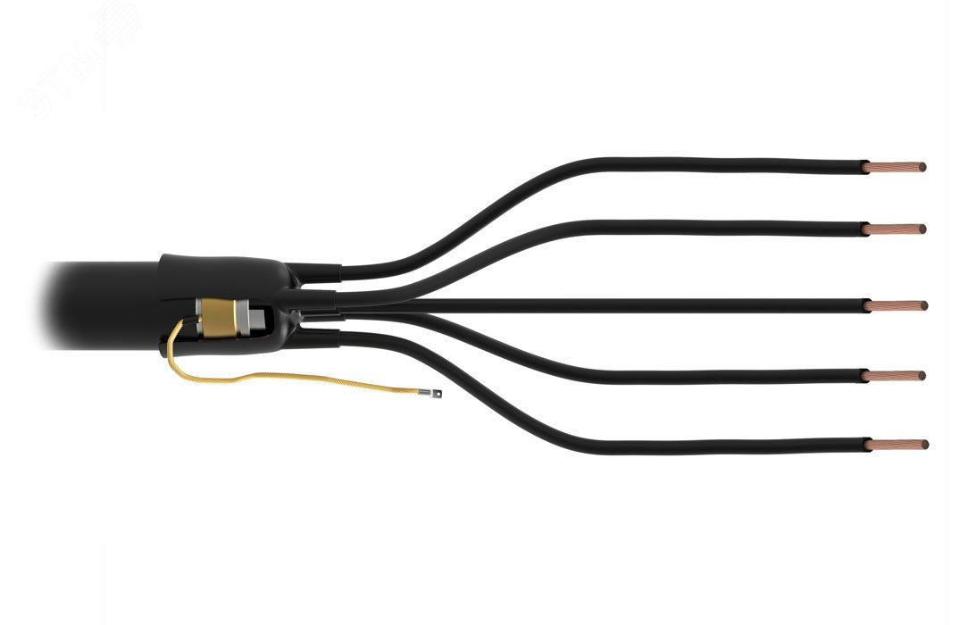 Предназначена для оконцевания 5-и жильных силовых кабелей с пластмассовой изоляцией с броней на напряжение до 1 кВ для внутренней и наружной установки. Концевая термоусаживаемая муфта состоит из термоусаживаемой перчатки, на внутреннюю поверхность которой нанесен термоплавкий клей, термоусаживаемых трубок изоляции жил, манжет, провода заземления с наконечником.