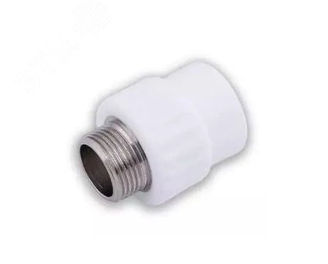 Комбинированный полипропиленовый фитинг, закладная деталь изготовлена из латуни марки ЛС-59-1. Используется для соединения полипропиленовой трубы и элемента системы с резьбовым соединением. Латунные части производятся методом горячего штампования, пластиковые - методом литья под давлением.
