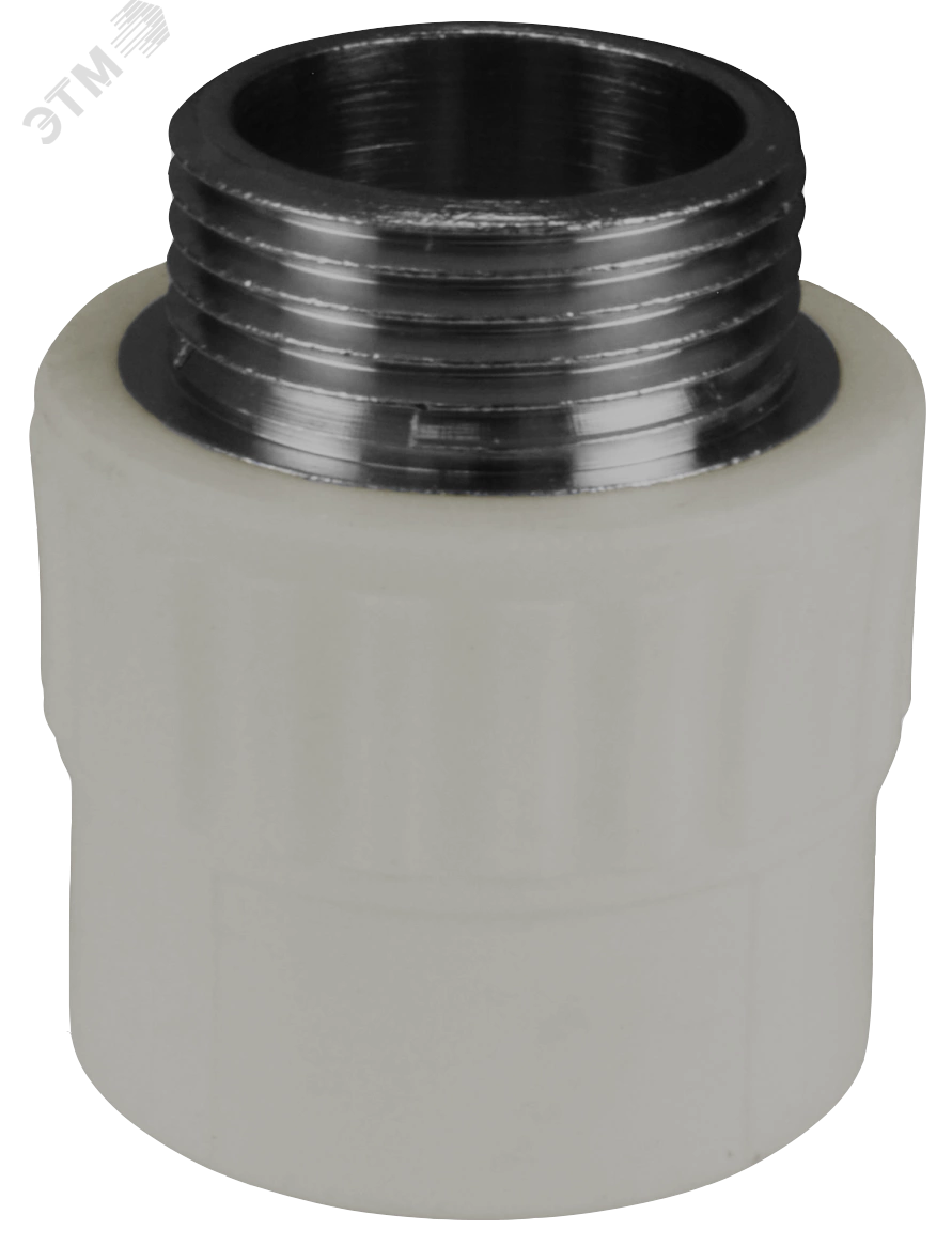 Комбинированный полипропиленовый фитин Используется для соединения полипропиленовой трубы и элемента системы с дюймовым резьбовым соединением. Латунные части производятся методом горячего штампования, пластиковые - методом литья под давлением.