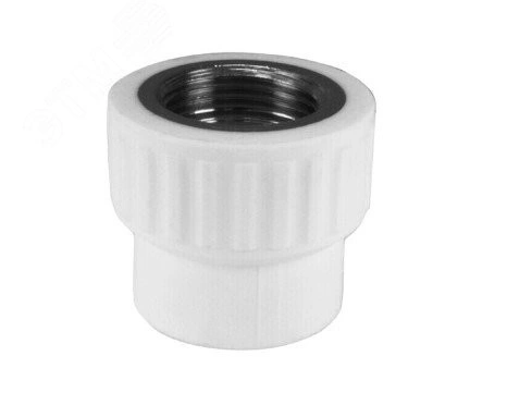 Комбинированный полипропиленовый фитинг, закладная деталь изготовлена из латуни марки ЛС-59-1. Используется для соединения полипропиленовой трубы и элемента системы с резьбовым соединением. Латунные части производятся методом горячего штампования, пластиковые - методом литья под давлением.