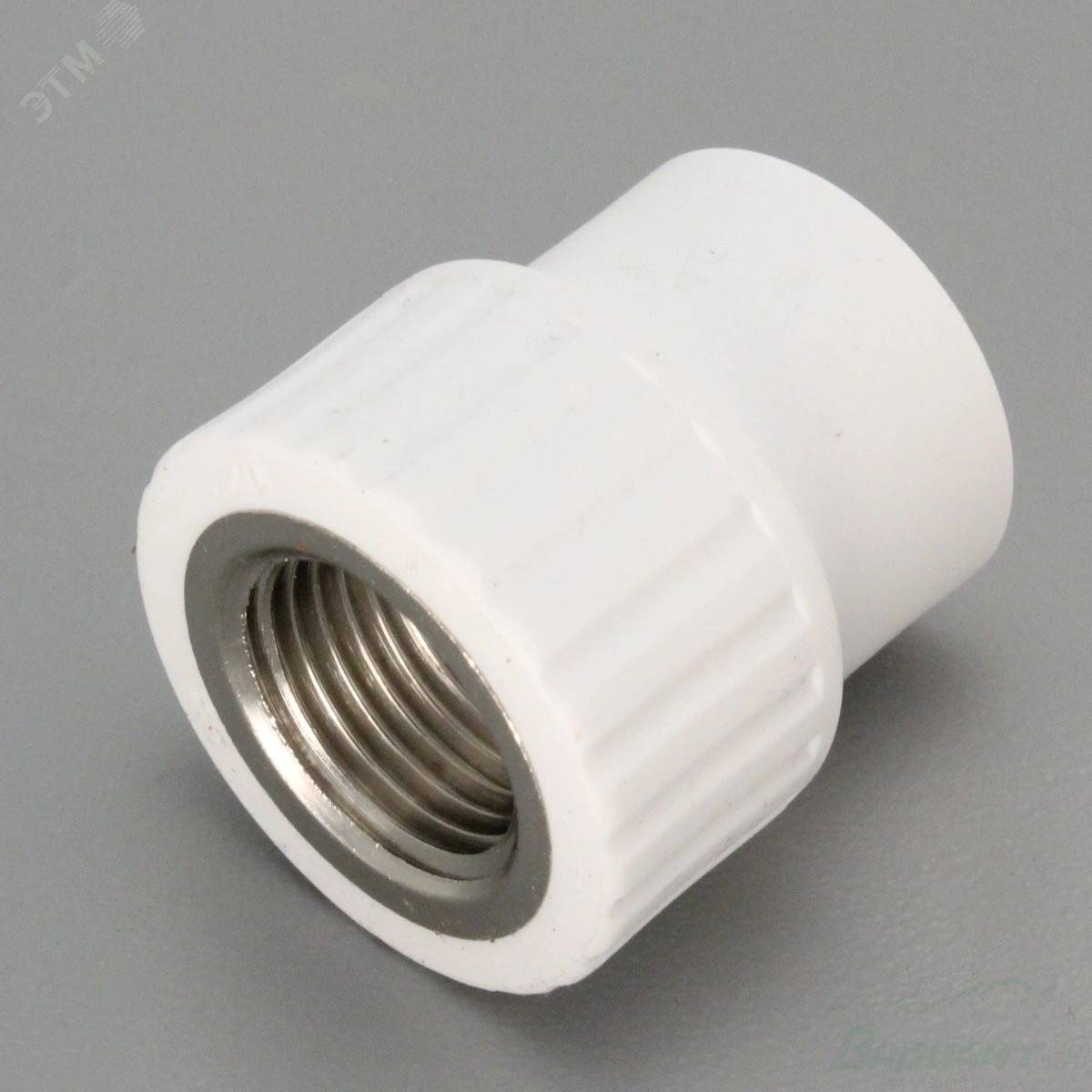 Комбинированный полипропиленовый фитинг, закладная деталь изготовлена из латуни марки ЛС-59-1. Используется для соединения полипропиленовой трубы и элемента системы с резьбовым соединением. Латунные части производятся методом горячего штампования, пластиковые - методом литья под давлением.